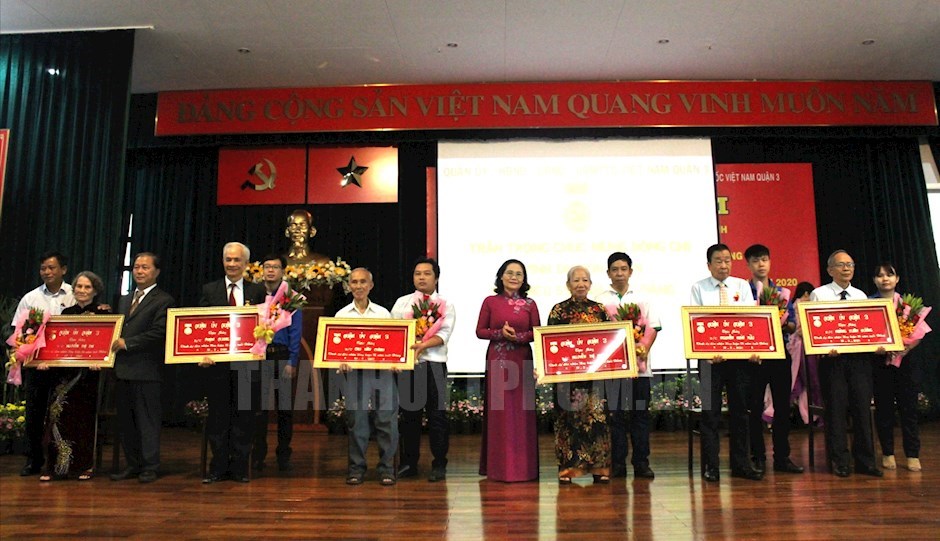 (Thanhuytphcm.vn) - Ngày 16/5, Quận ủy - HĐND - UBND - Ủy ban MTTQ Việt Nam Quận 3 đã tổ chức Lễ kỷ niệm 130 năm Ngày sinh Chủ tịch Hồ Chí Minh (19/5/1890 – 19/5/2020); trao huy hiệu cho các đảng viên tròn tuổi Đảng và tuyên dương điển hình học tập và làm theo tư tưởng, đạo đức, phong cách Hồ Chí Minh 2020. Phó Bí thư Thành ủy, Chủ tịch HĐND TPHCM Nguyễn Thị Lệ; Thành ủy viên, Bí thư Quận ủy Quận 3 Trần Trọng Tuấn đã đến dự.